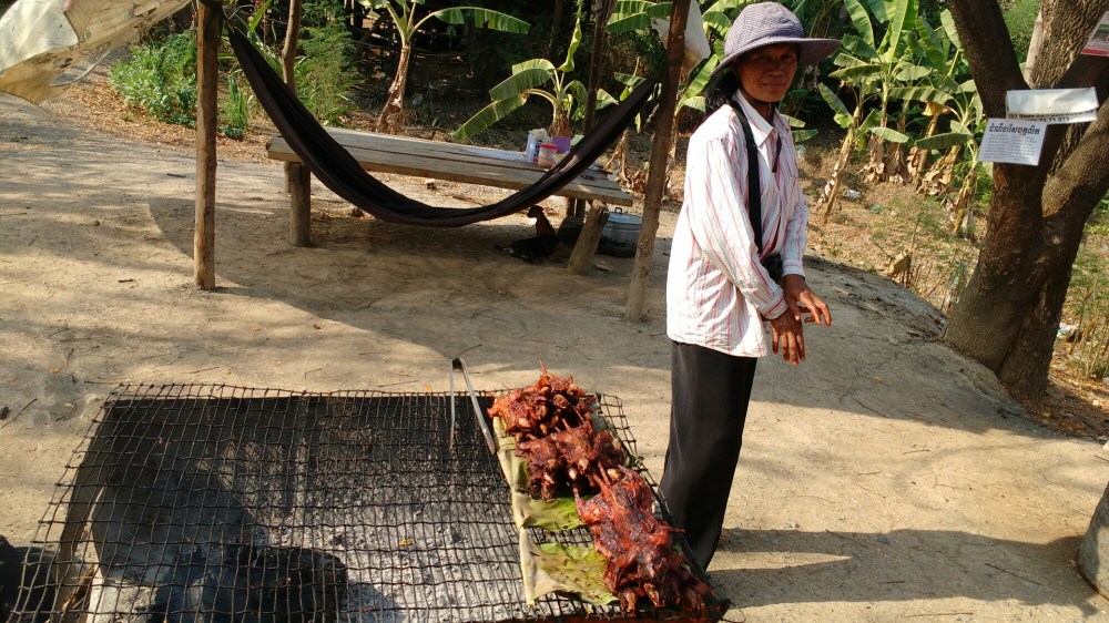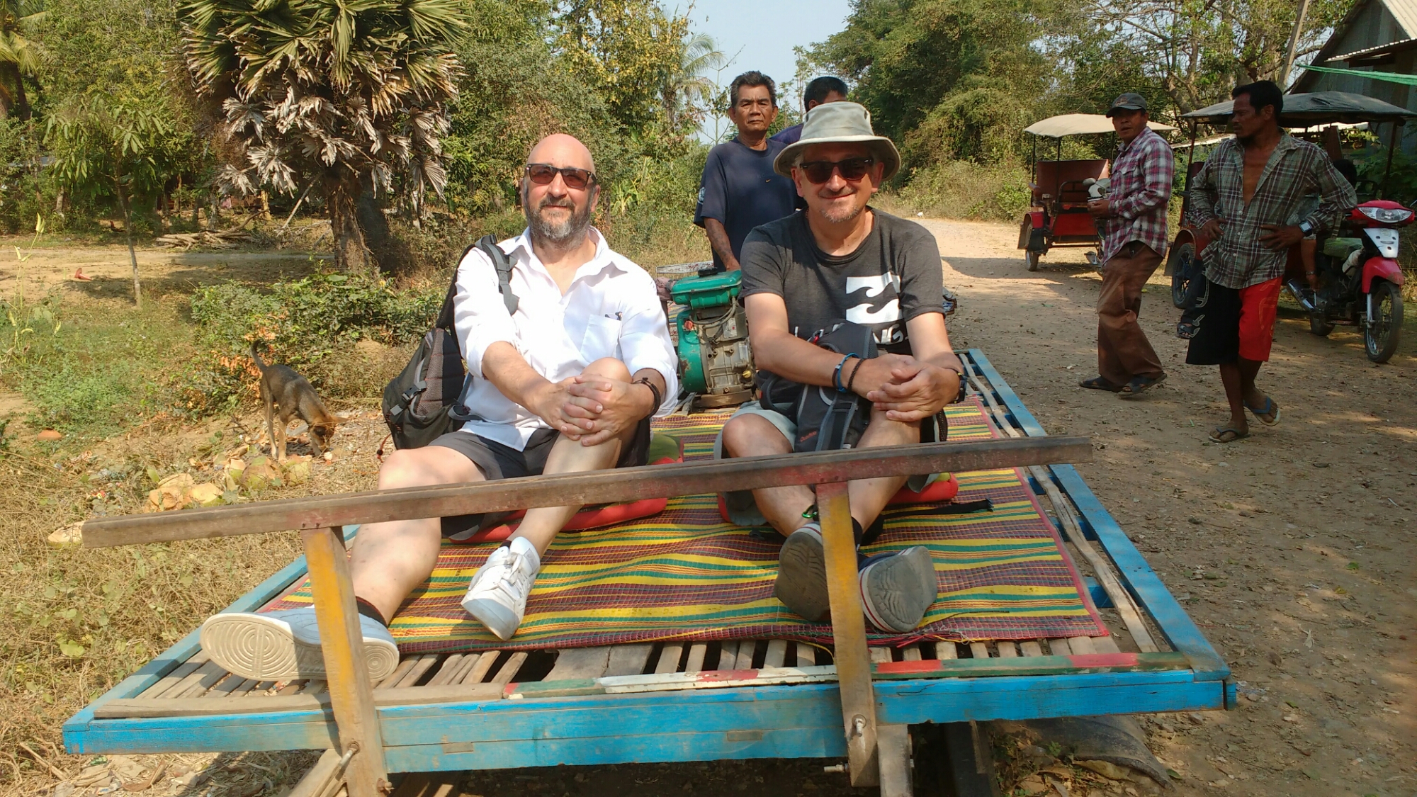 Nuestro conductor está de forma física muy bien, tiene 74 años, solo habla Camboyano, pero por alguno de sus tatuajes, creemos que perteneció a los jemeres rojos. Estos, excepto unos pocos dirigentes que fueron juzgados, se integraron en la sociedad, pero muchos de ellos en el campo o en trabajos sin cualificacion. Hemos de tener en cuenta que muchos de ellos eran adolescentes, que fueron reclutados.