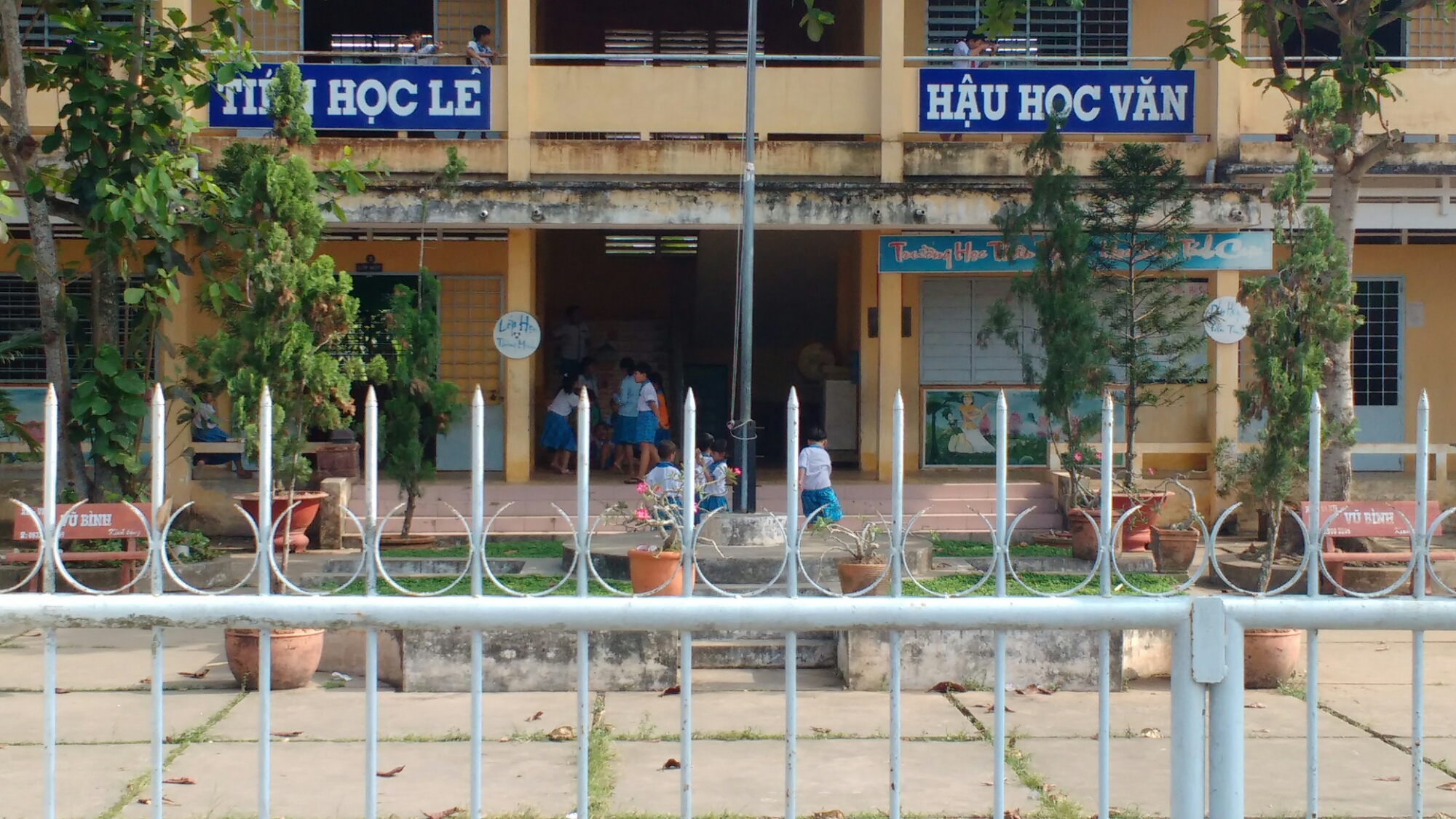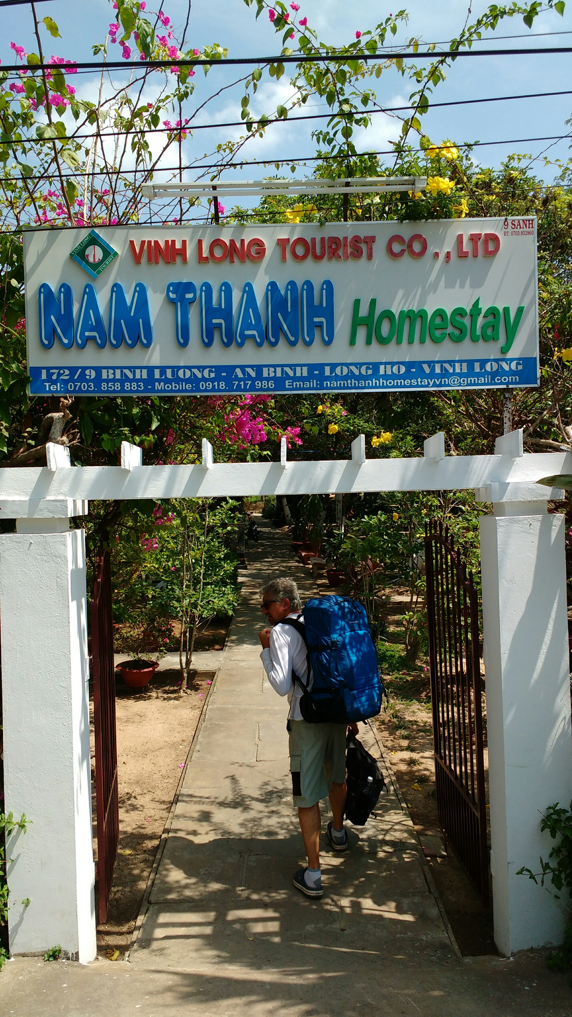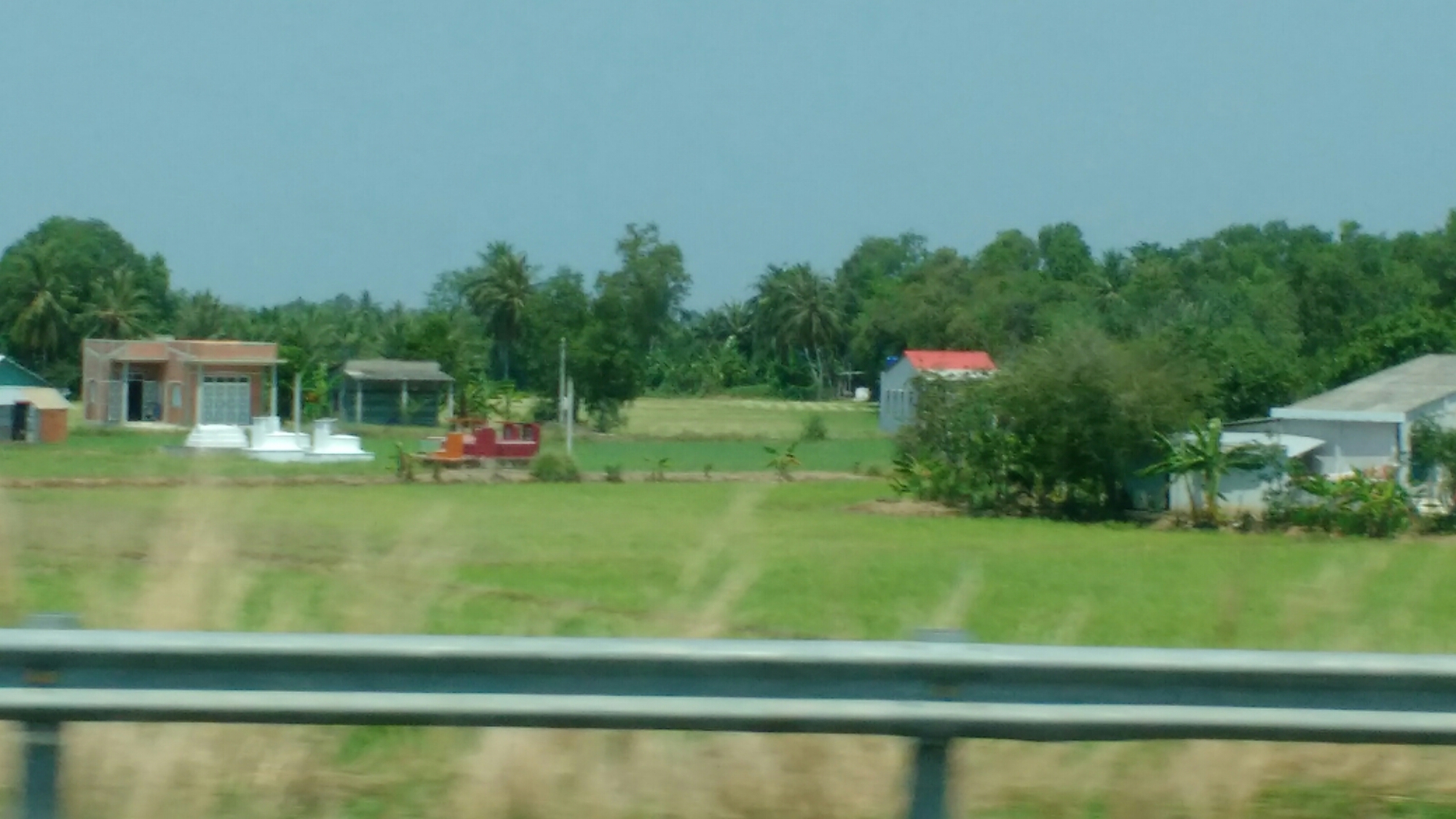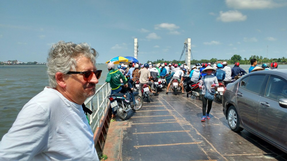 El viaje lo hacemos en un autobús antiguo , que para en todos los pueblos, hasta Vinh Long, para allí coger un transbordador que nos cruzará el río.