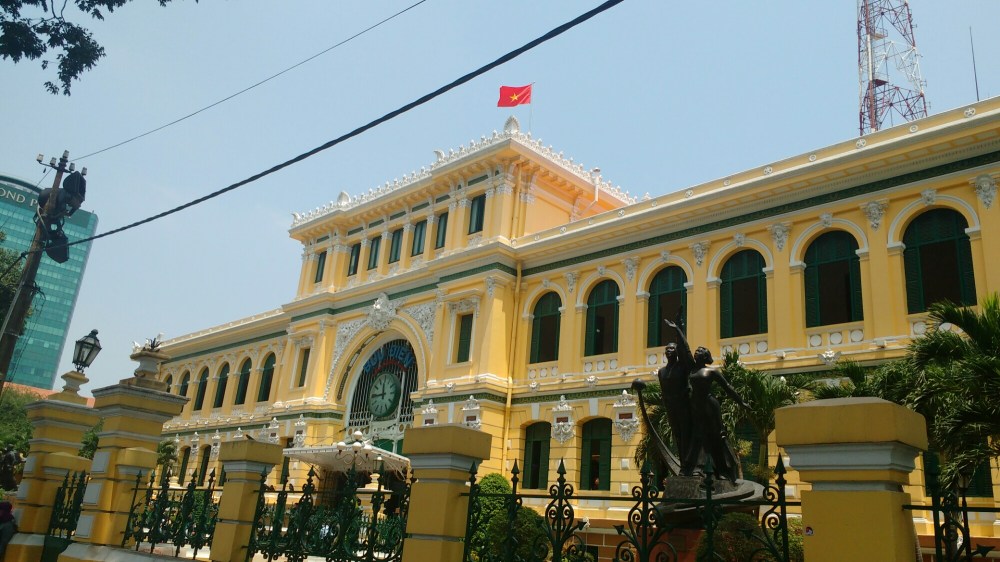 Los edificios más significativos son el ayuntamiento de principios de siglo XX, con columnas corintias en su fachada, situado en la cabecera de un amplio bulevar que llega hasta el río Saigon.