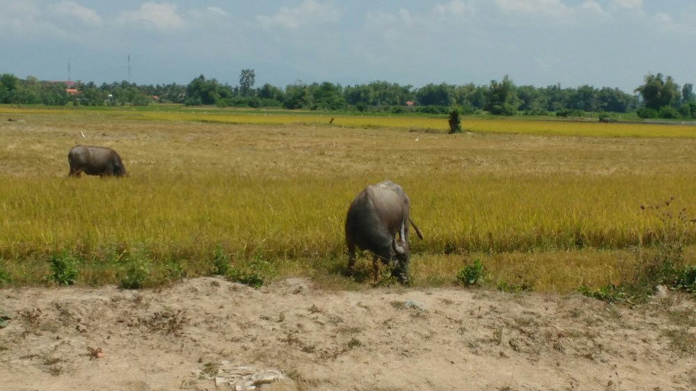En el camino pudimos ver a búfalos de agua en los campos de arroz.