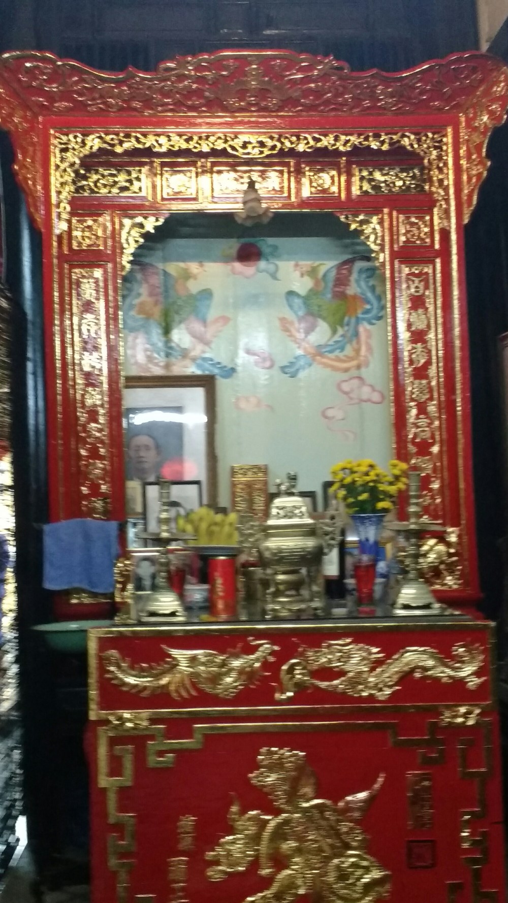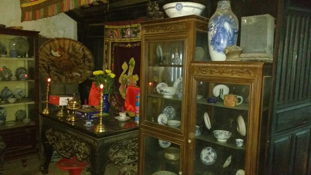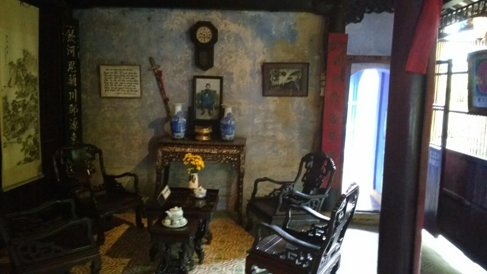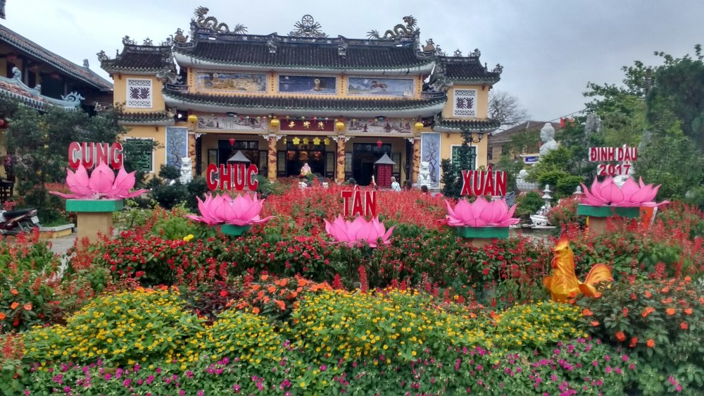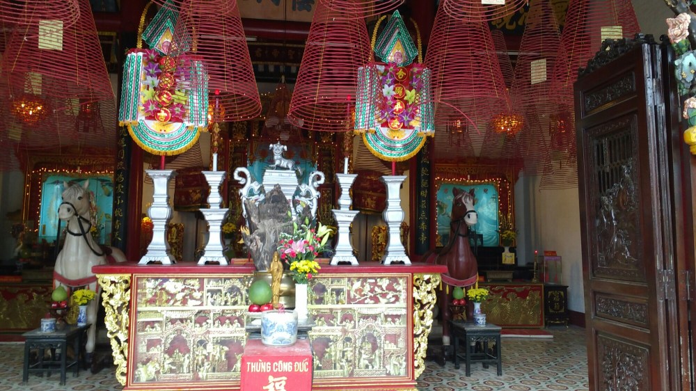 Las comunidades china y japonesa estaban separadas por un pequeño río, hasta que se construyó un puente cubierto de madera, asentado sobre pilares de piedra. En el interior hay un altar vietnamita.