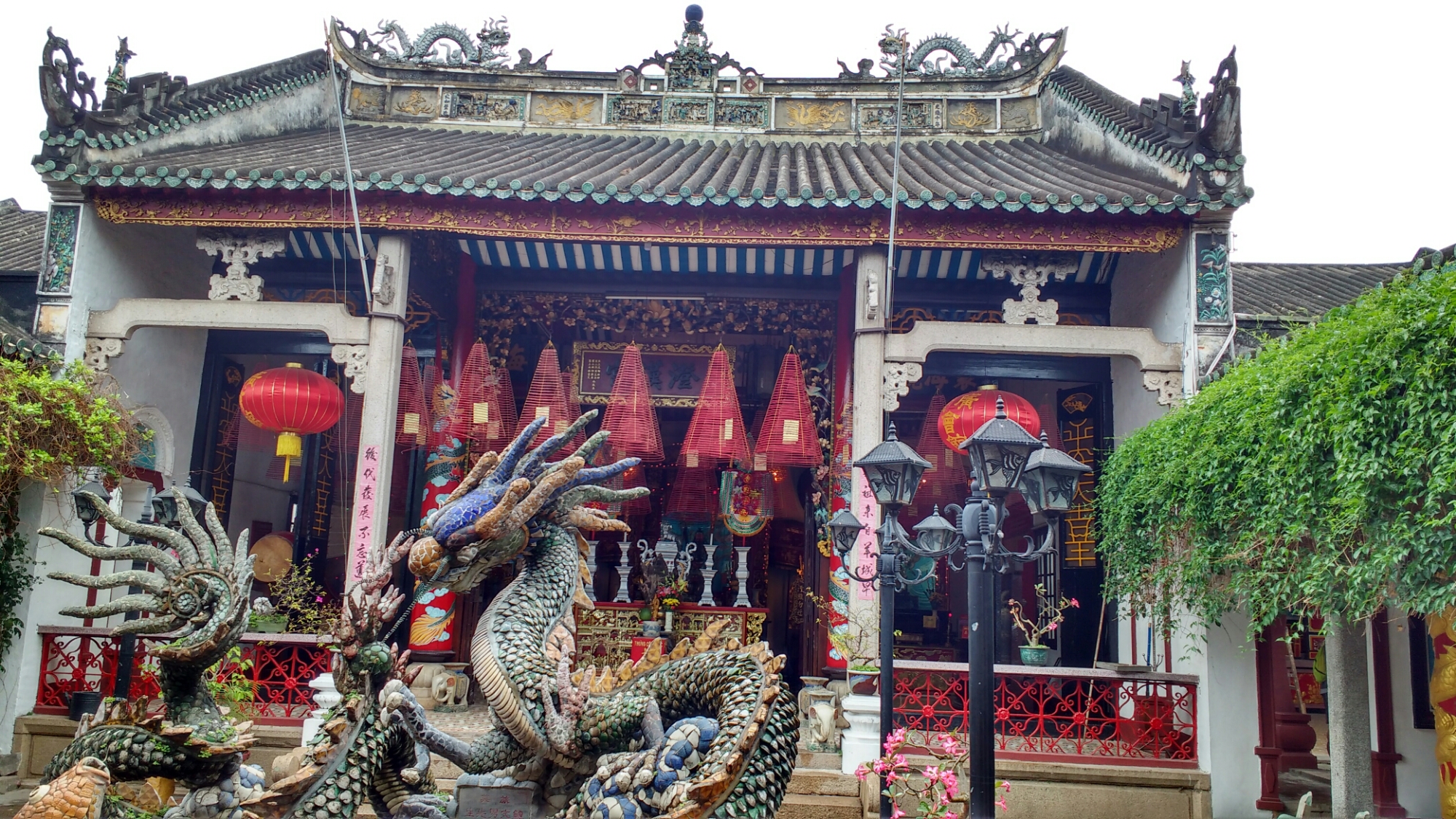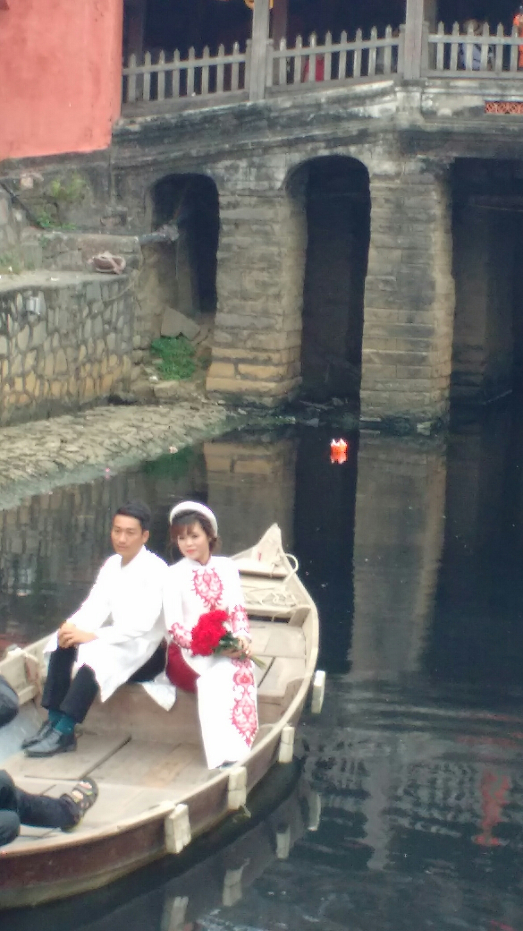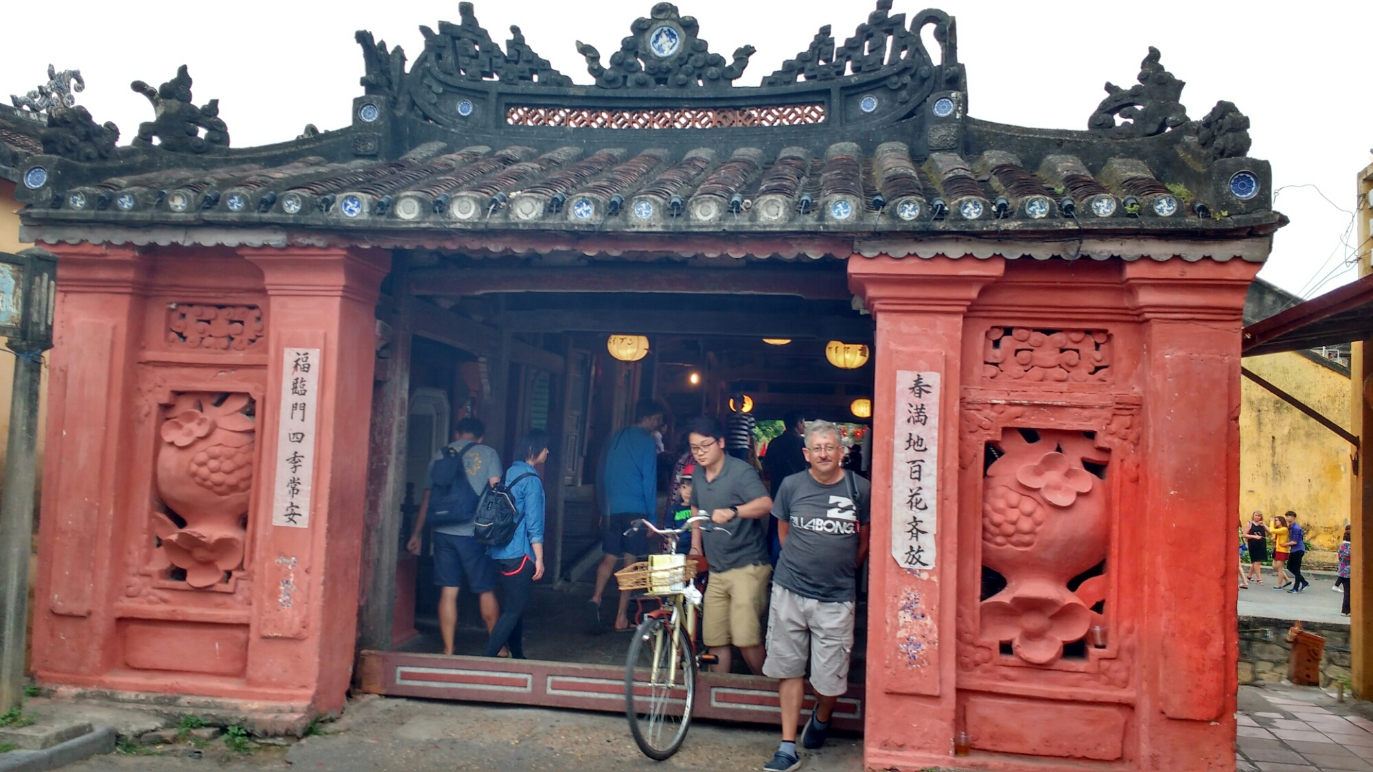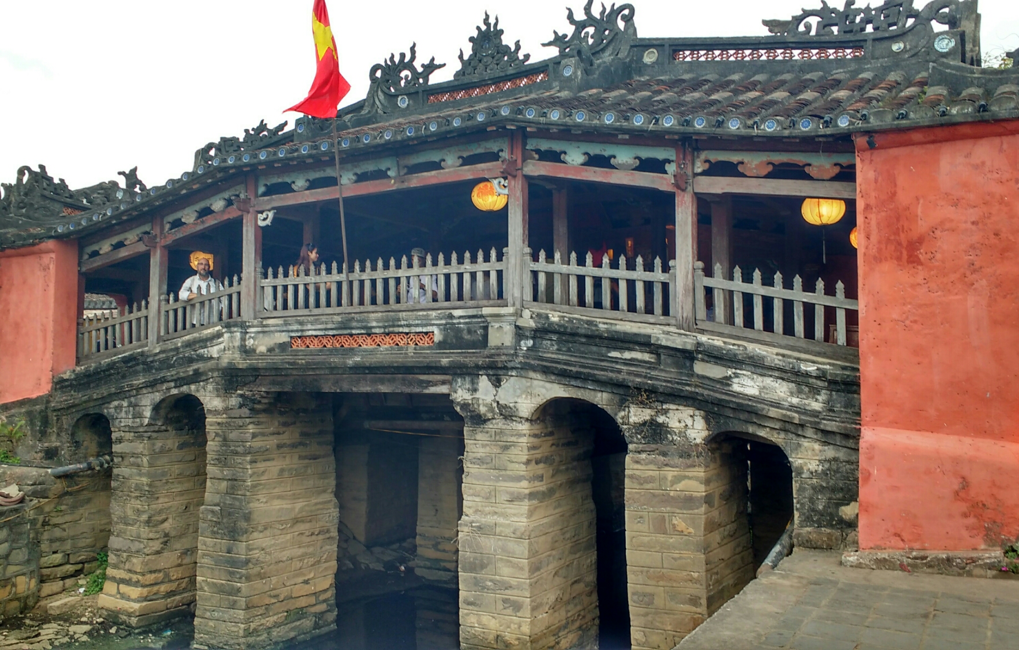 Las comunidades china y japonesa estaban separadas por un pequeño río, hasta que se construyó un puente cubierto de madera, asentado sobre pilares de piedra. En el interior hay un altar vietnamita.