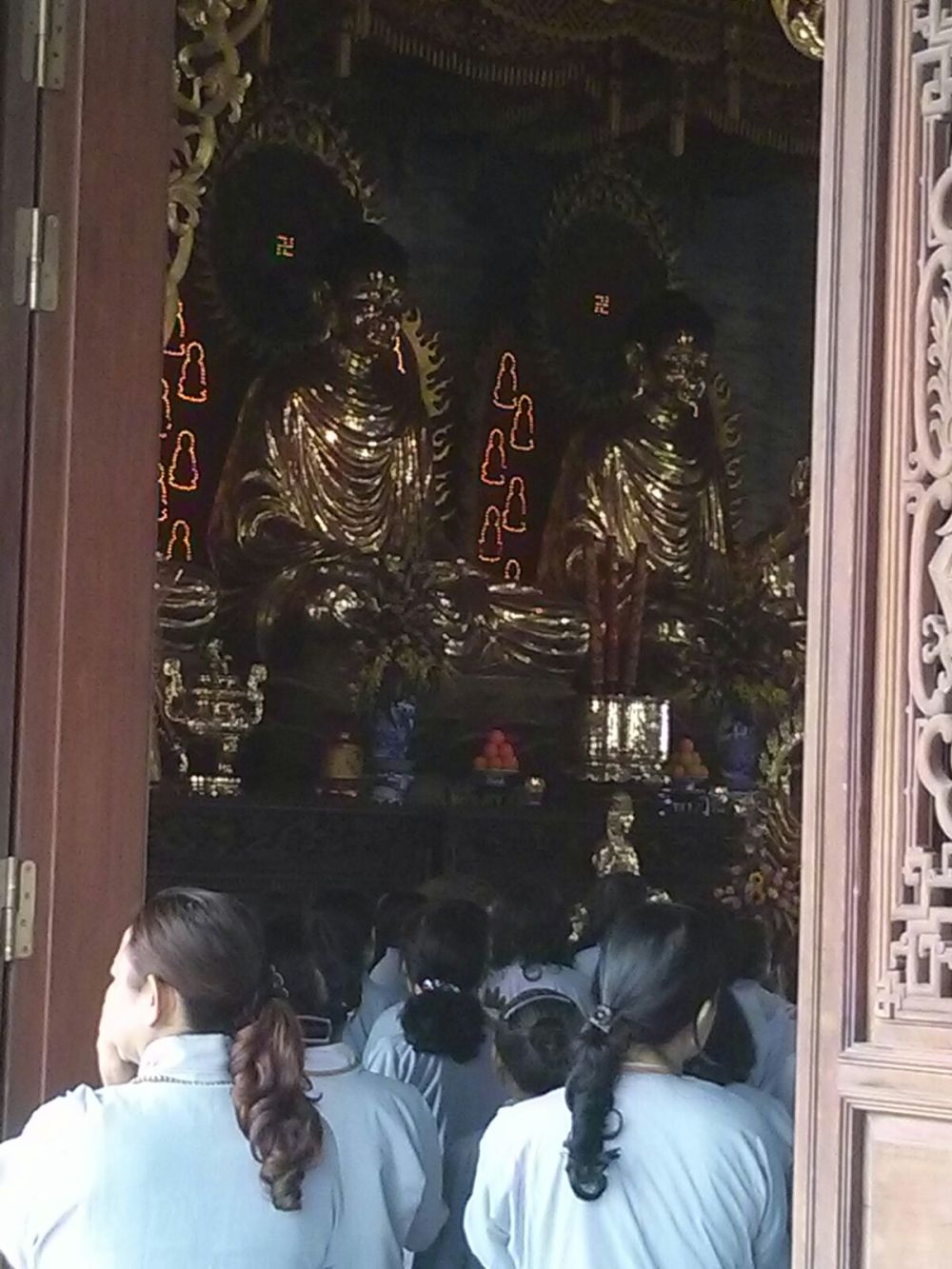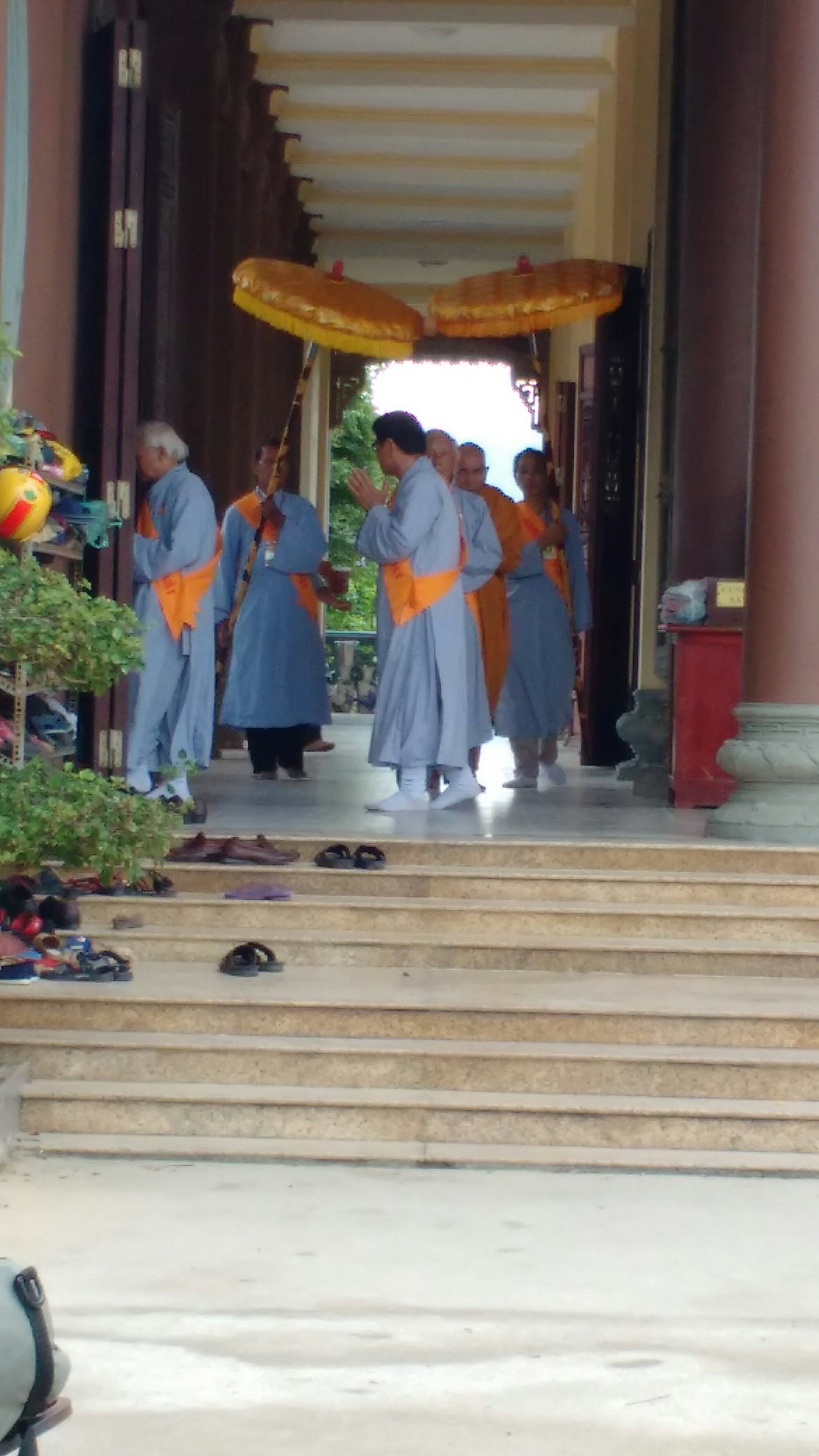 La pagoda está llena de monjas y monjes celebrando sus ritos.