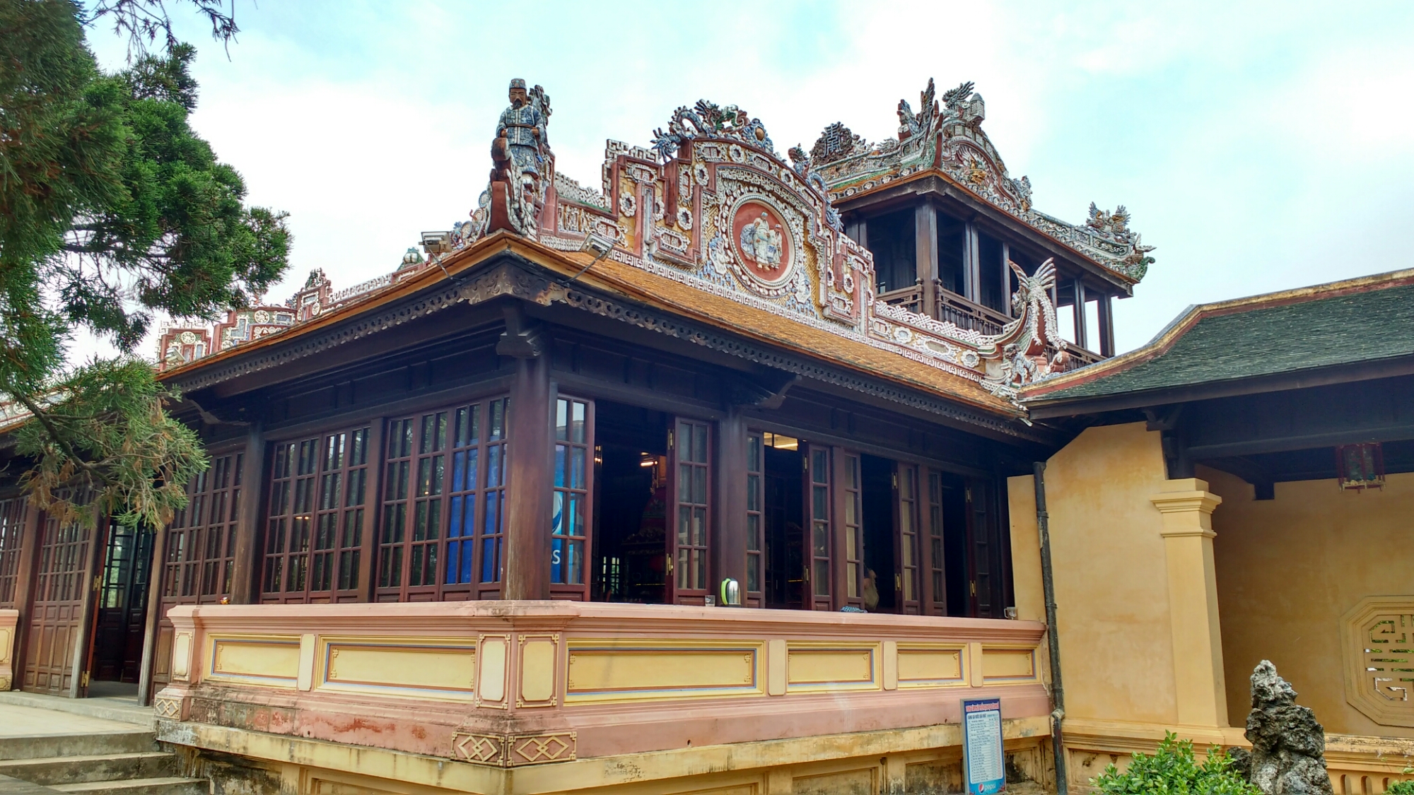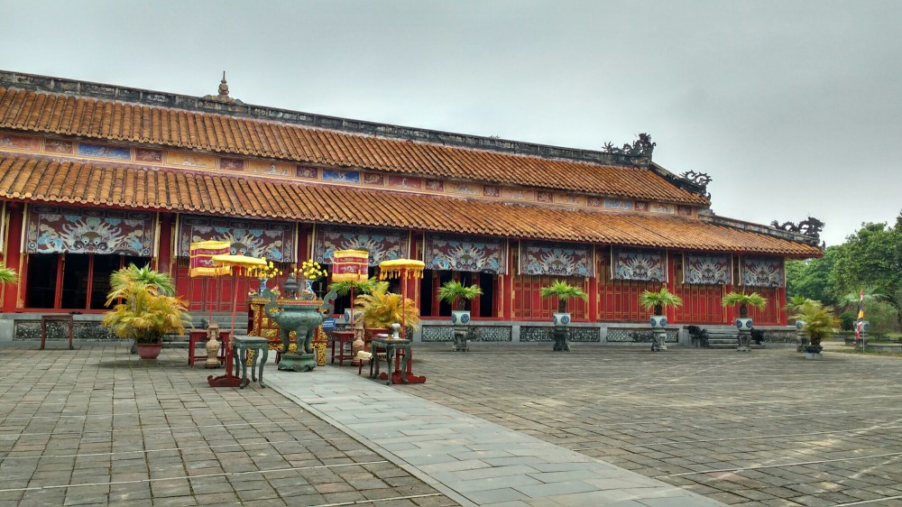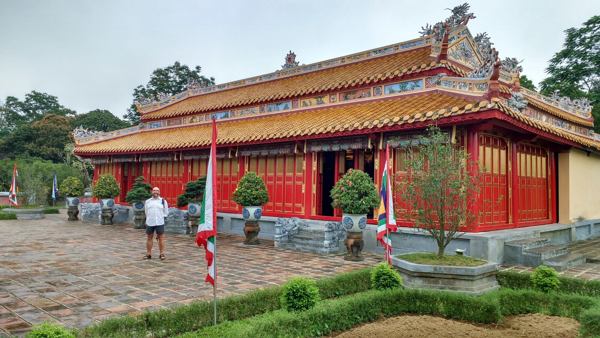 Esta ciudad, situada en el centro del país, al lado del río Perfume, fue la residencia de los Nguyen, señores feudales que dominaron el sur del país desde el siglo XVII, y que a partir del XIX, con el control total la convierten en la capital del imperio, hasta el año 1945, que se ve obligado a abdicar el último emperador, terminando exiliado en París, ya que durante varios años, Francia lo convirtió en protectorado, igual que el resto de la península de Indochina.