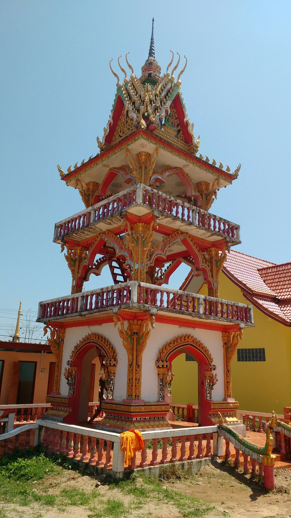 Al poco de entrar nos topamos con una colorida pagoda, comprobando que es la tónica general de estos templos en el país