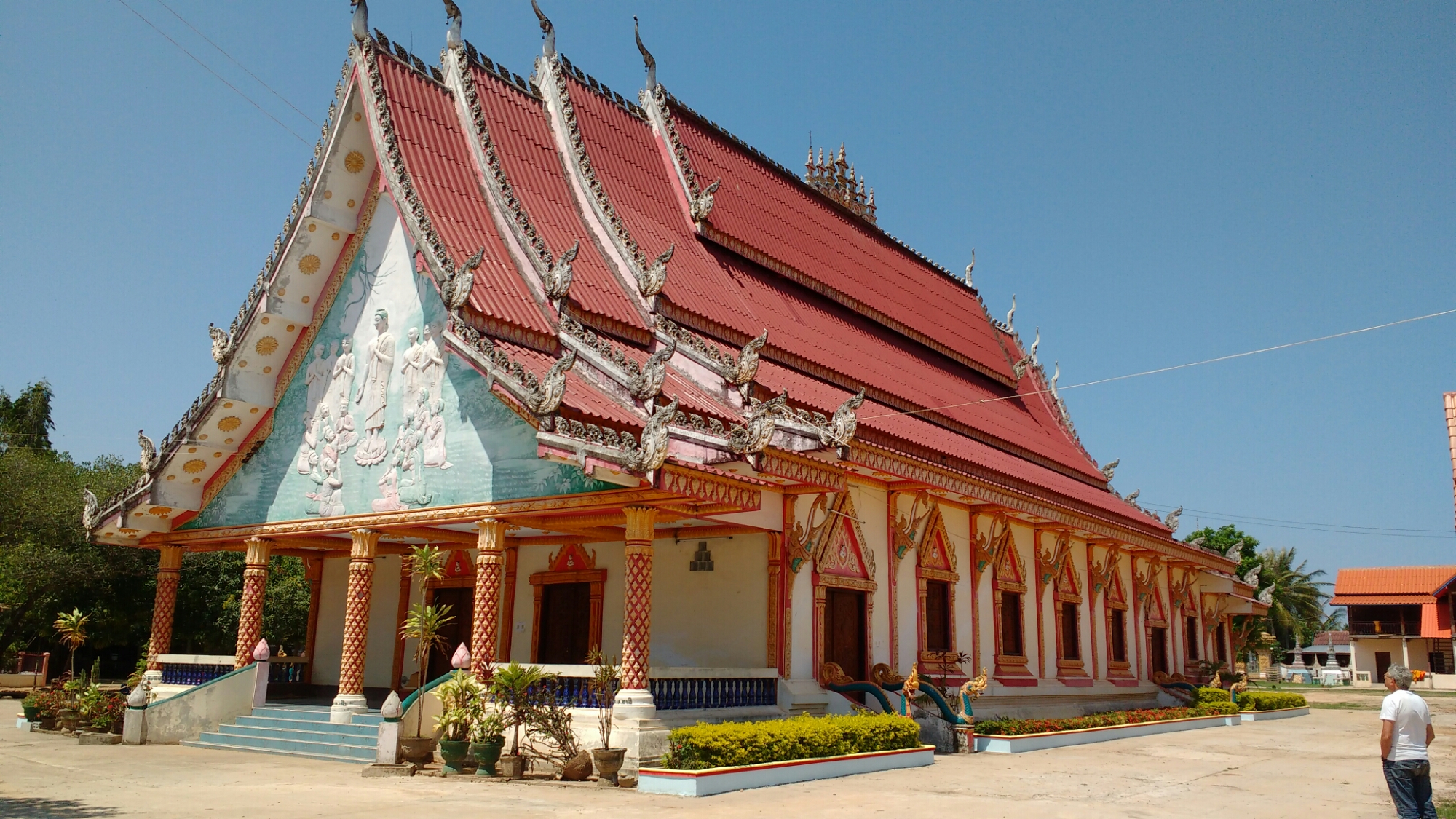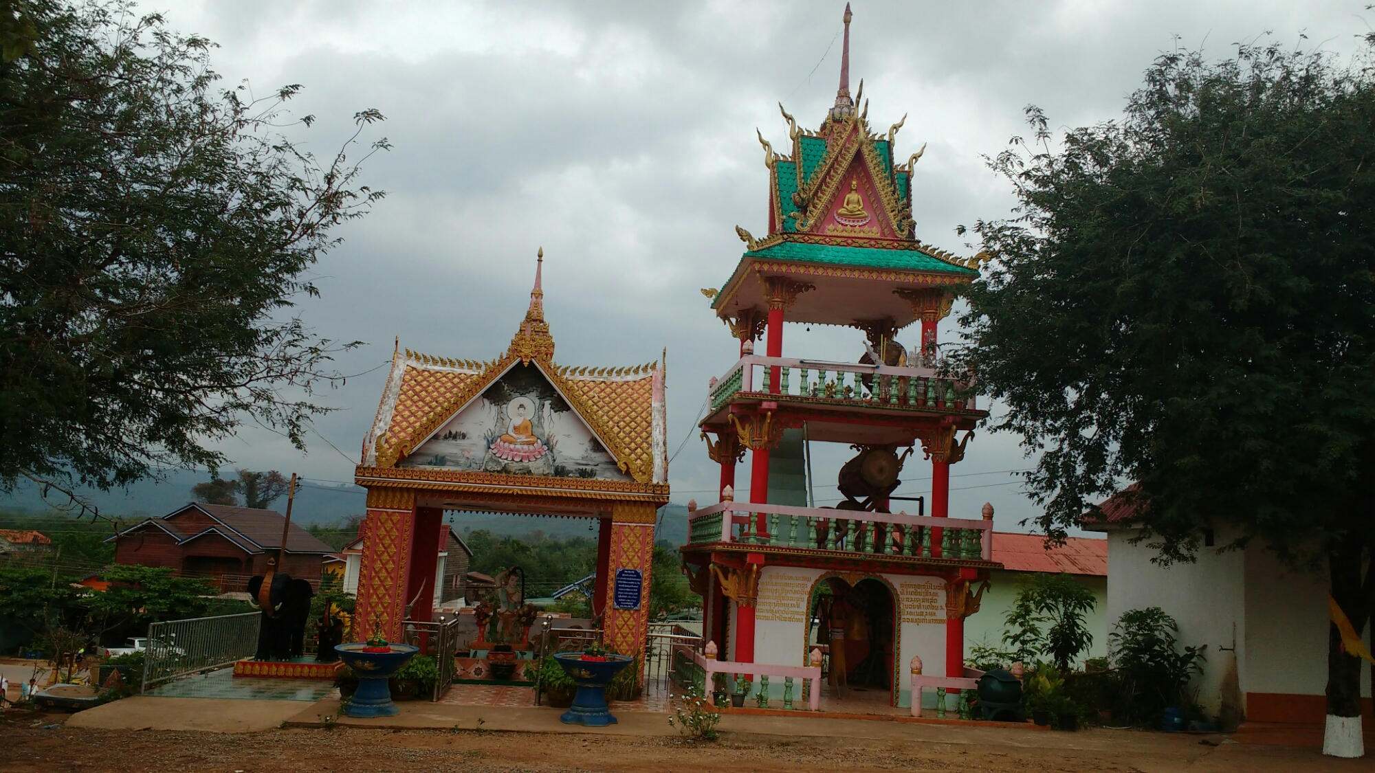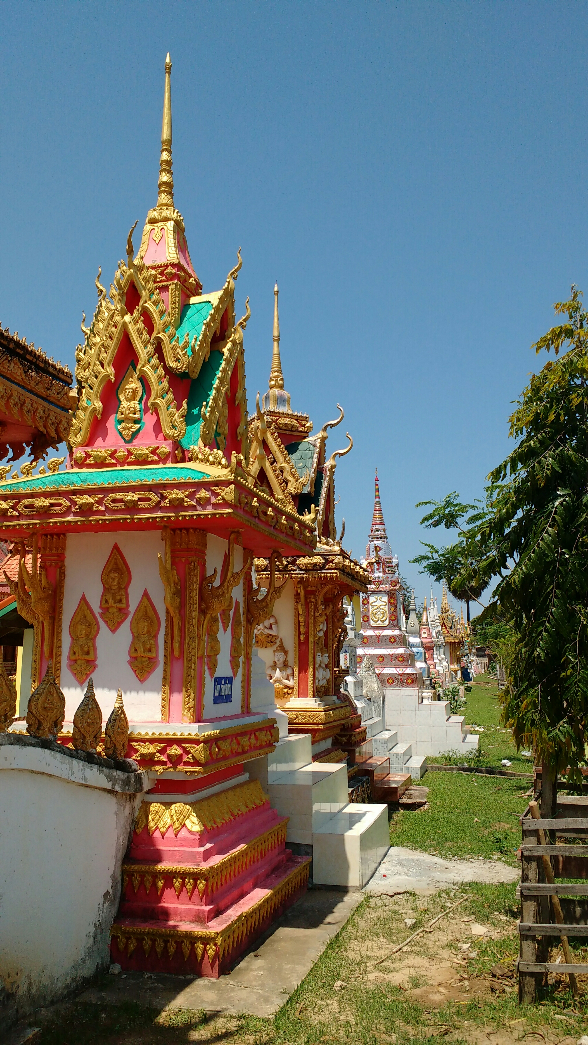Al poco de entrar nos topamos con una colorida pagoda, comprobando que es la tónica general de estos templos en el país