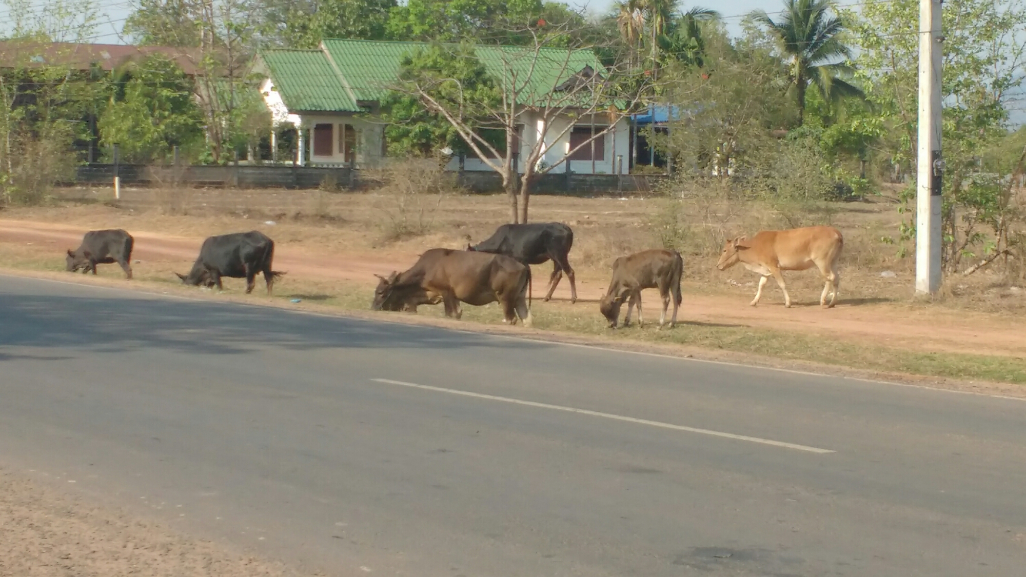 Las carreteras principales están en general en buen estado, con poca circulación de vehículos, excepto en los accesos a las ciudades grandes, pero los auténticos reyes de la carretera, que cruzan cuando quieren, y te toca parar o esquivar, son las vacas, los búfalos y las cabras, que aparecen con bastante frecuencia.