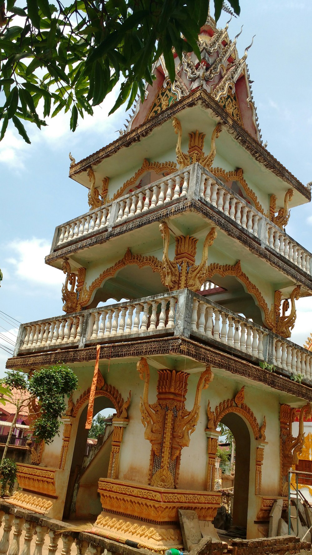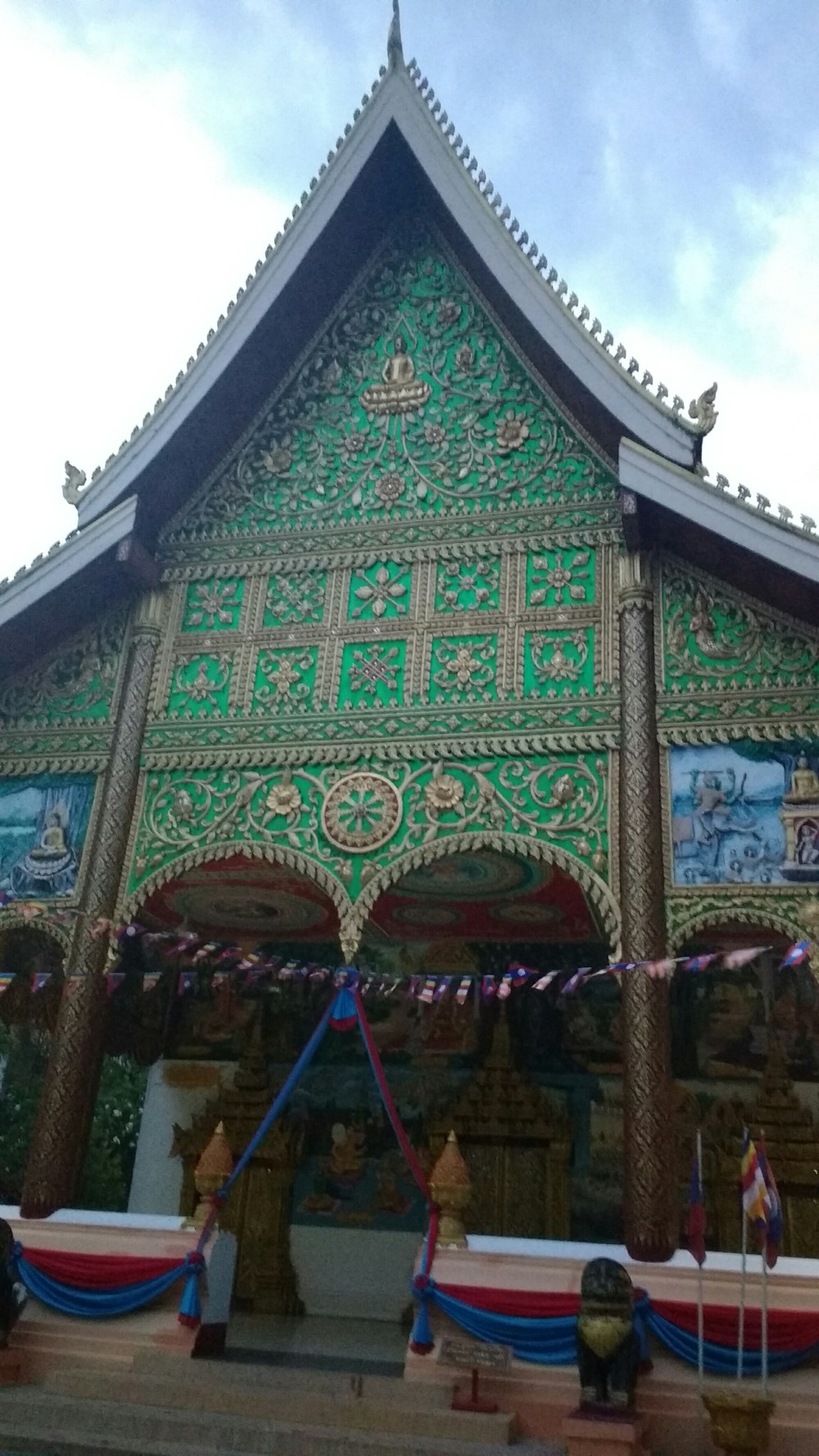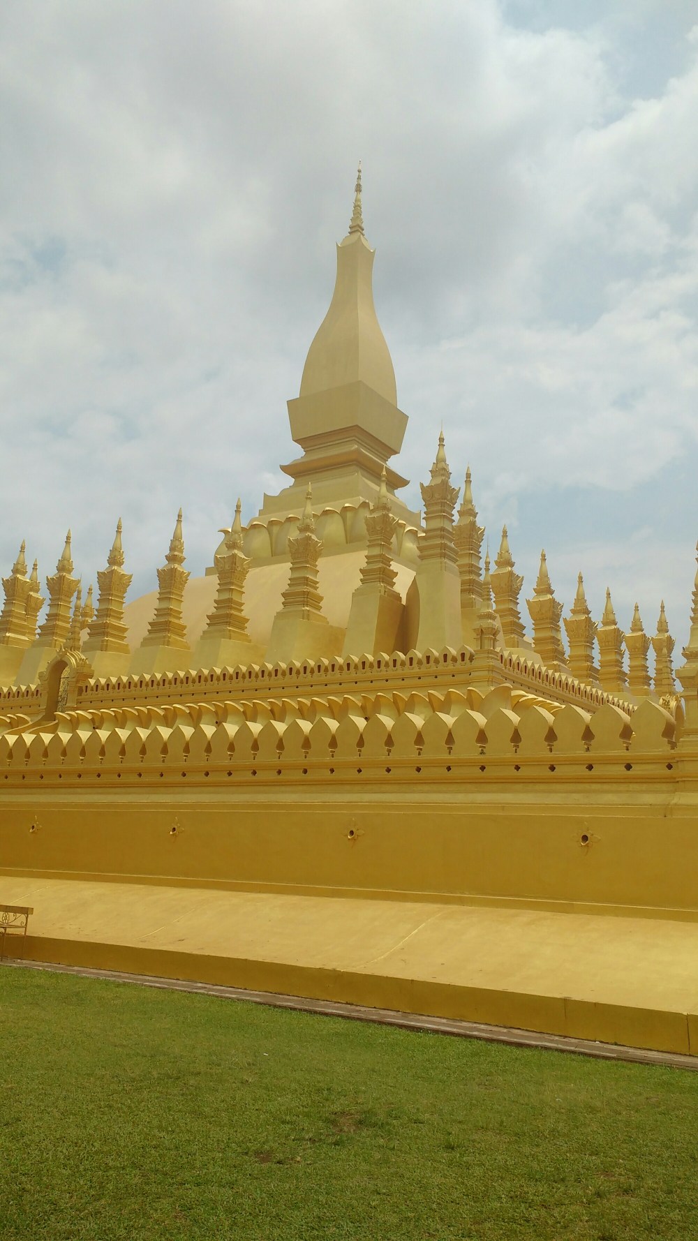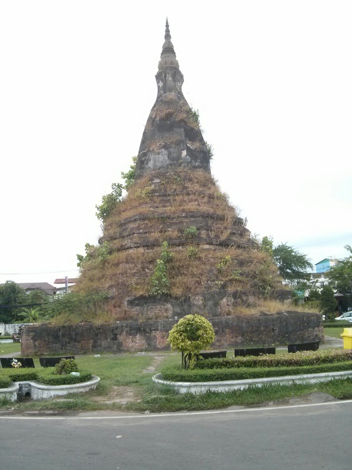 En el centro de una pequeña plaza nos encontramos con la «estupa negra», que dicen que estuvo recubierta de laminas de oro, que fueron saqueadas durante la invasion que sufrieron por el imperio de Siam.