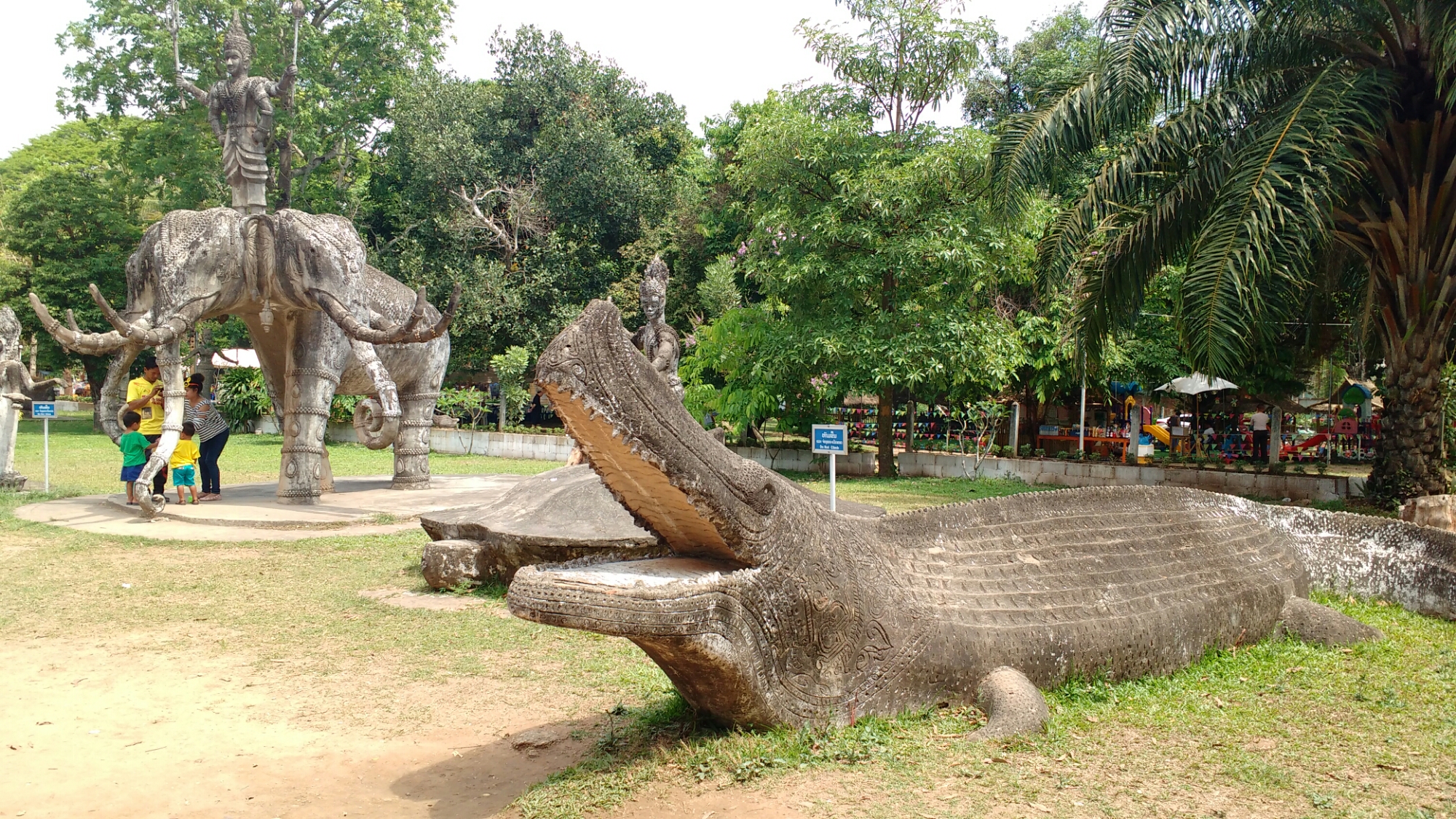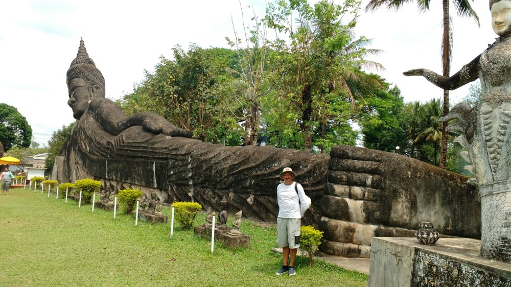 Nos desplazamos 25 km al sudeste de Vientian, a orillas del Mekong , se encuentra el Buda Park, una especie de parque temático, con multitud de budas representados de muy distintas formas, desde el «Buda calabaza», hasta uno recostado con bastantes metros de longitud.
