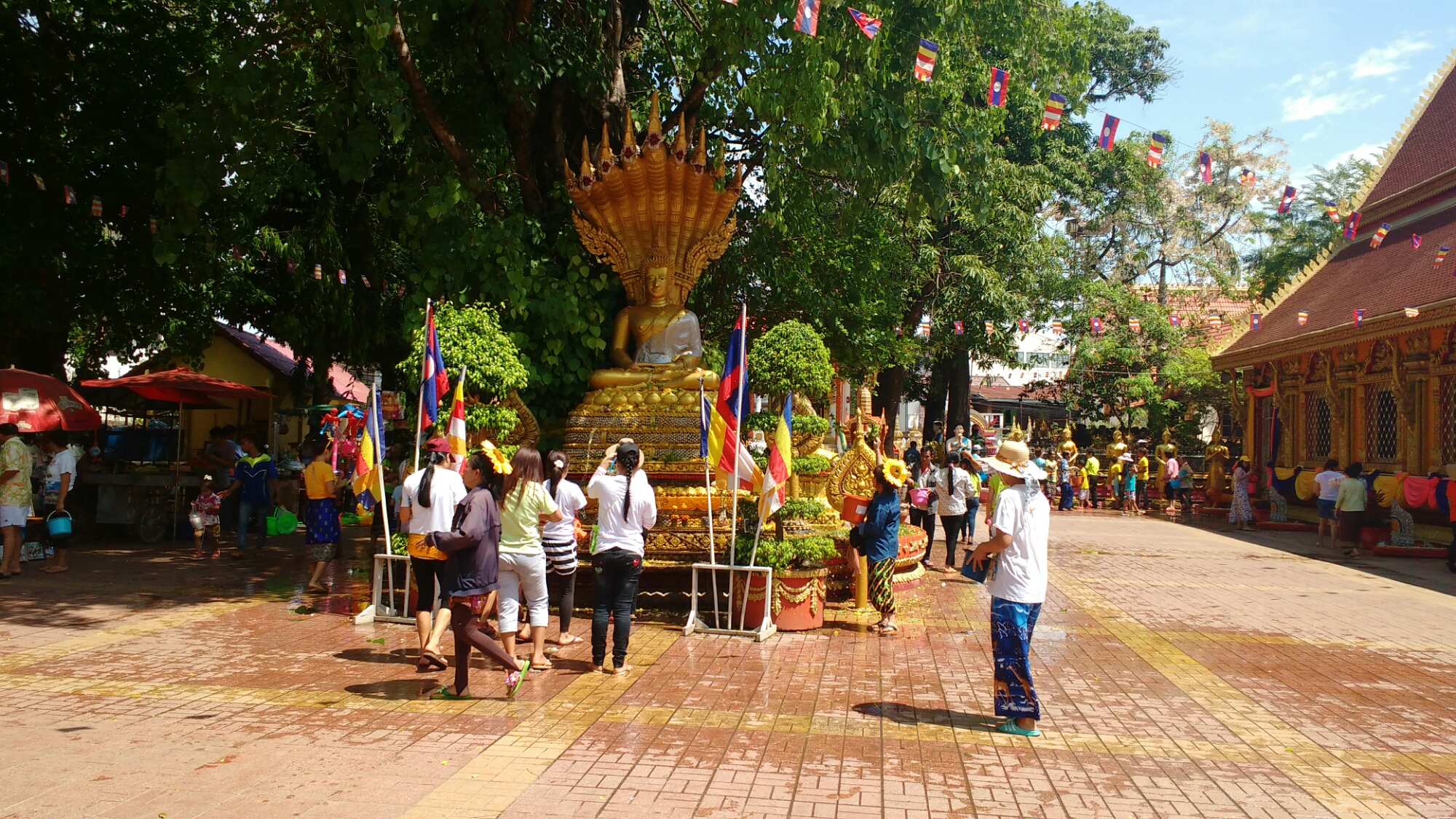 Como rito religioso, celebran el año nuevo, mojando con agua a los budas de las pagodas, y recibiendo la bendición de los monjes