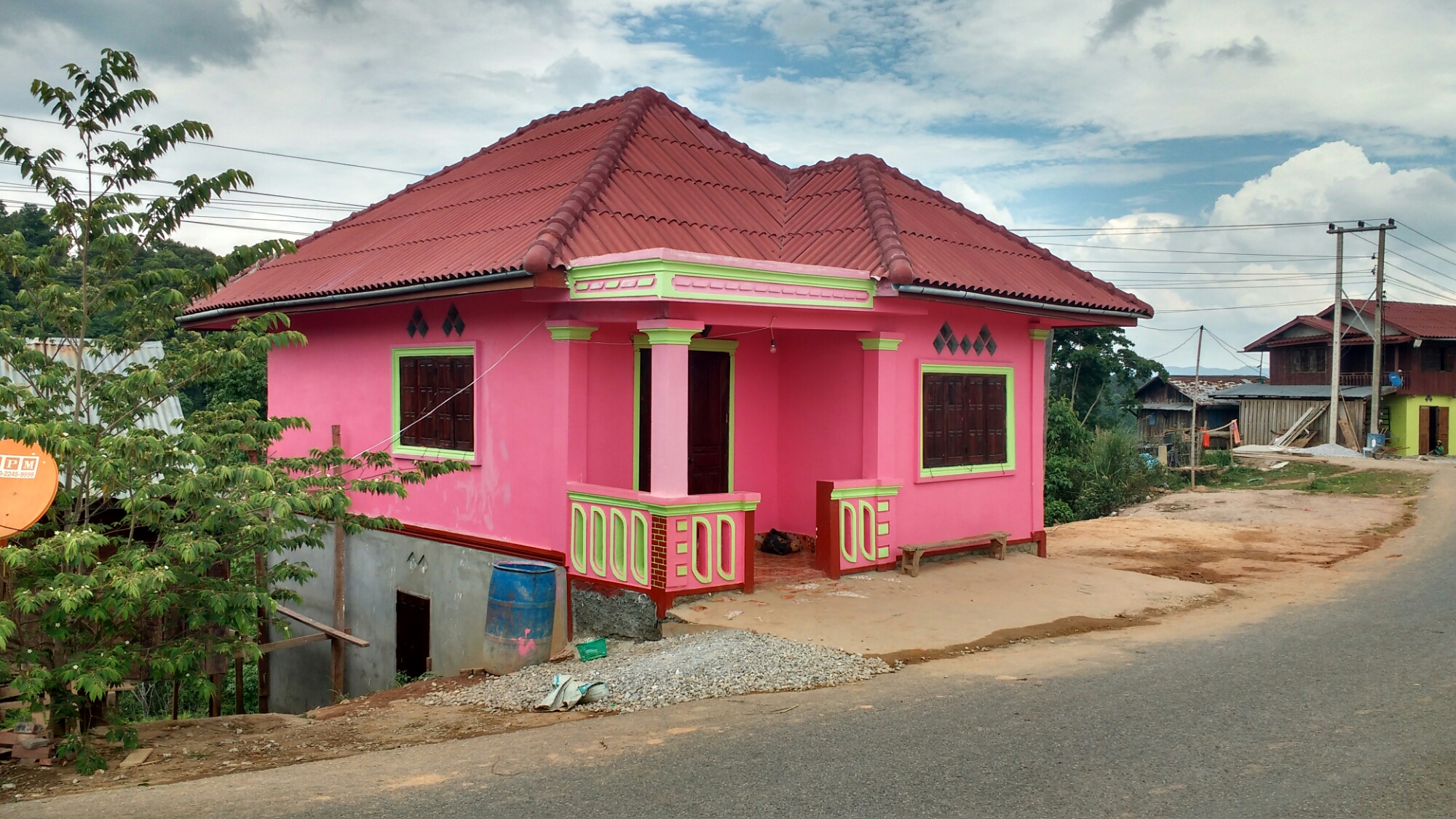 Eso sí, lo que no hemos descubierto es el motivo que les lleva cuando han prosperado y se hacen una casa de ladrillos a pintarla con colores fuertes