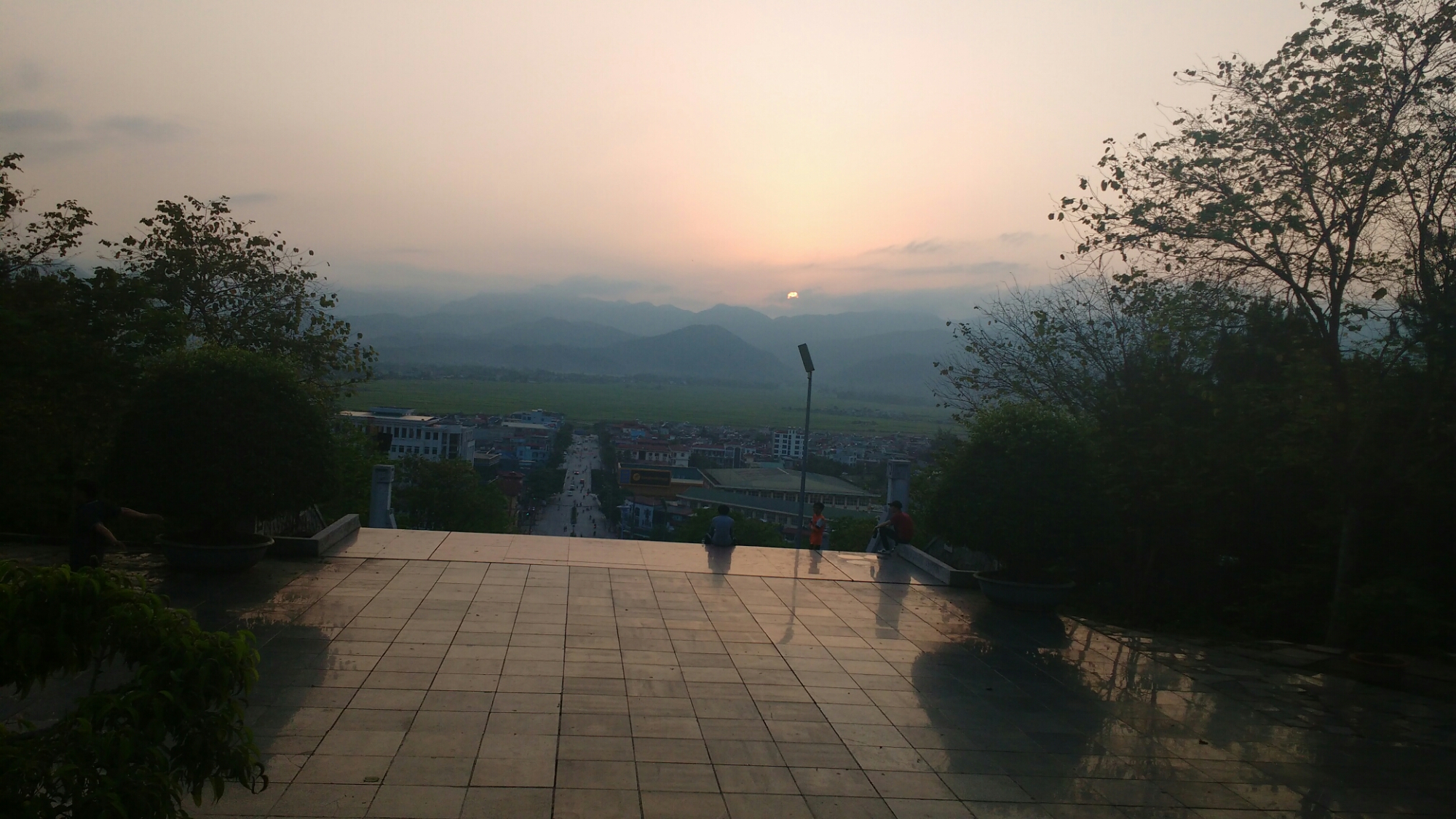 Puesta de sol sobre las montañas de Laos, desde el monumento a la batalla de Dien Bien Phou en Vietnam.