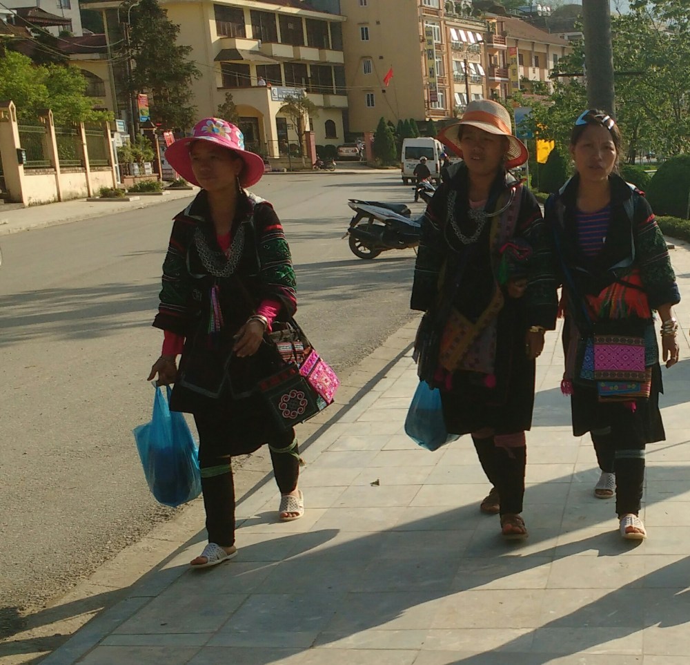 Las mujeres Hmong son fácilmente reconocibles por el colorido de sus ropas, entre los hombres, solo hemos visto a 2 con su ropa tradicional de color negro y gorro del mismo color.