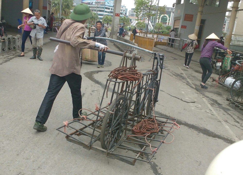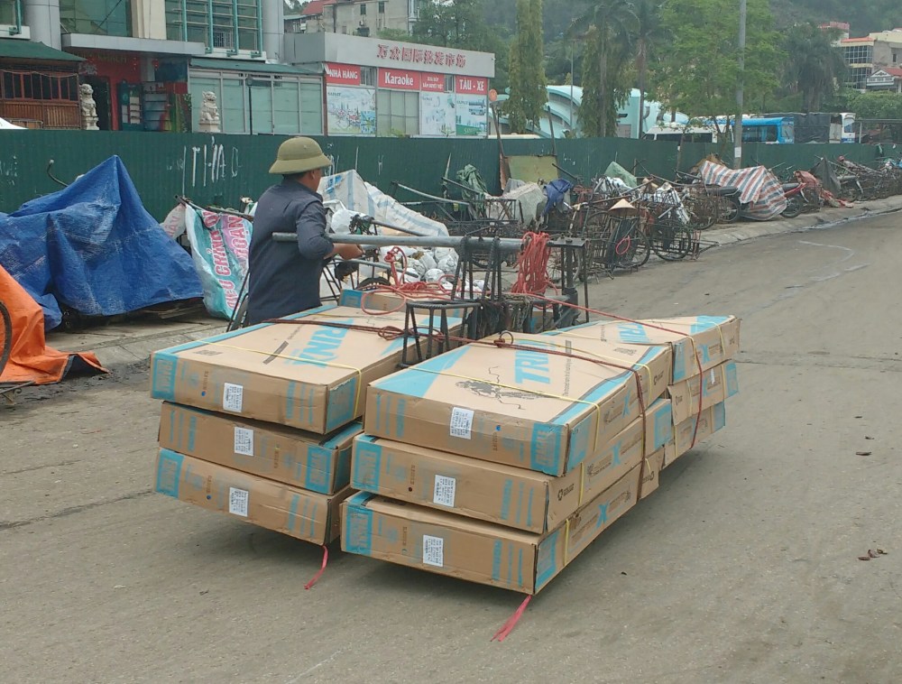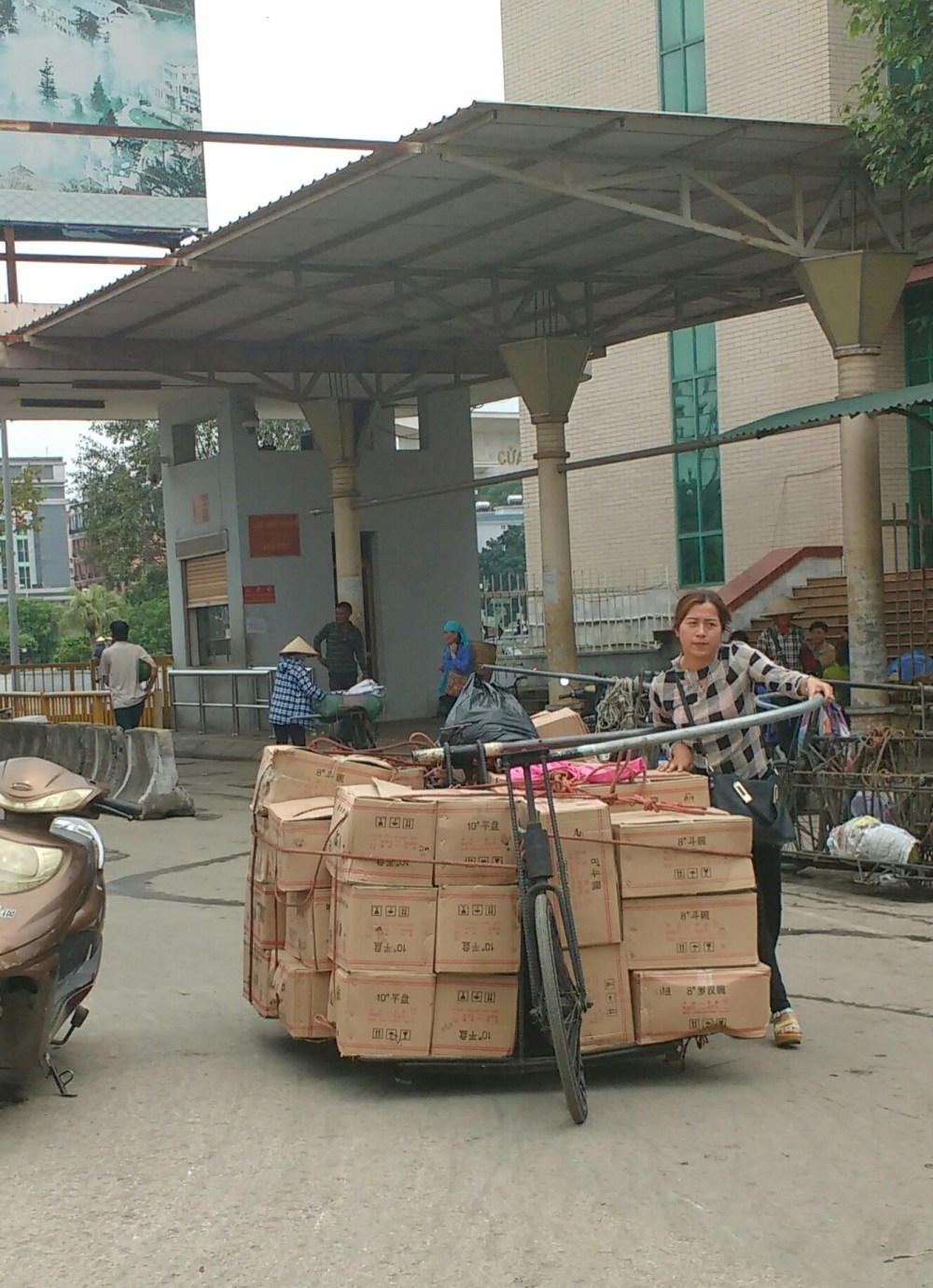 Estas mercancías son transportadas en unos artilugios , que consisten en antiguas bicicletas, modificadas, siendo empujadas por la persona que las lleva. Una vez pasada la frontera son cargadas en camiones, y regresan de nuevo a China para hacer más viajes.