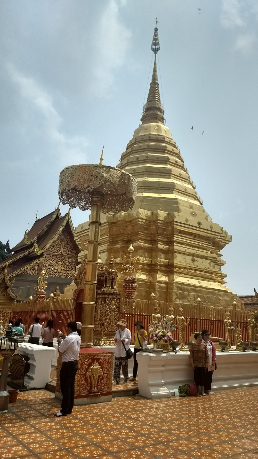 A unos 24 km de la ciudad se encuentra uno de los más venerados por los tailandeses, es el Wat Phrathat Doi Suthep, que se encuentra a 1.080m. de altitud, subiendo por una carretera bien asfaltada, pero con infinitas curvas.