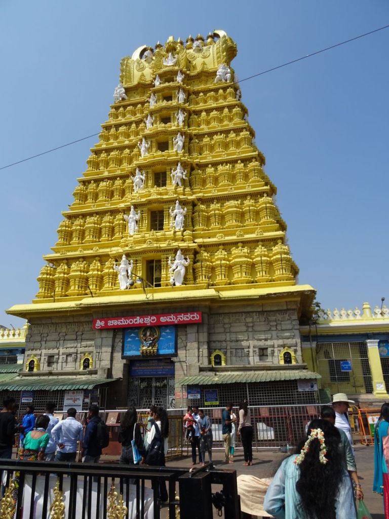 El templo dedicado a la diosa Chamundi destaca por su torre (gopuram) de 40 metros de altura y 7 pisos.